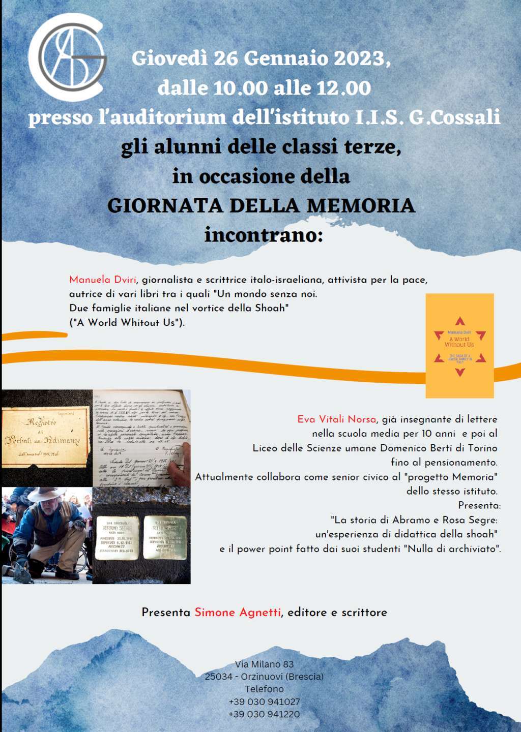 L’incontro on line è rivolto agli studenti delle classi quarte ed è aperto alla cittadinanza, presso l’Auditorium dell’Istituto Grazio Cossali.