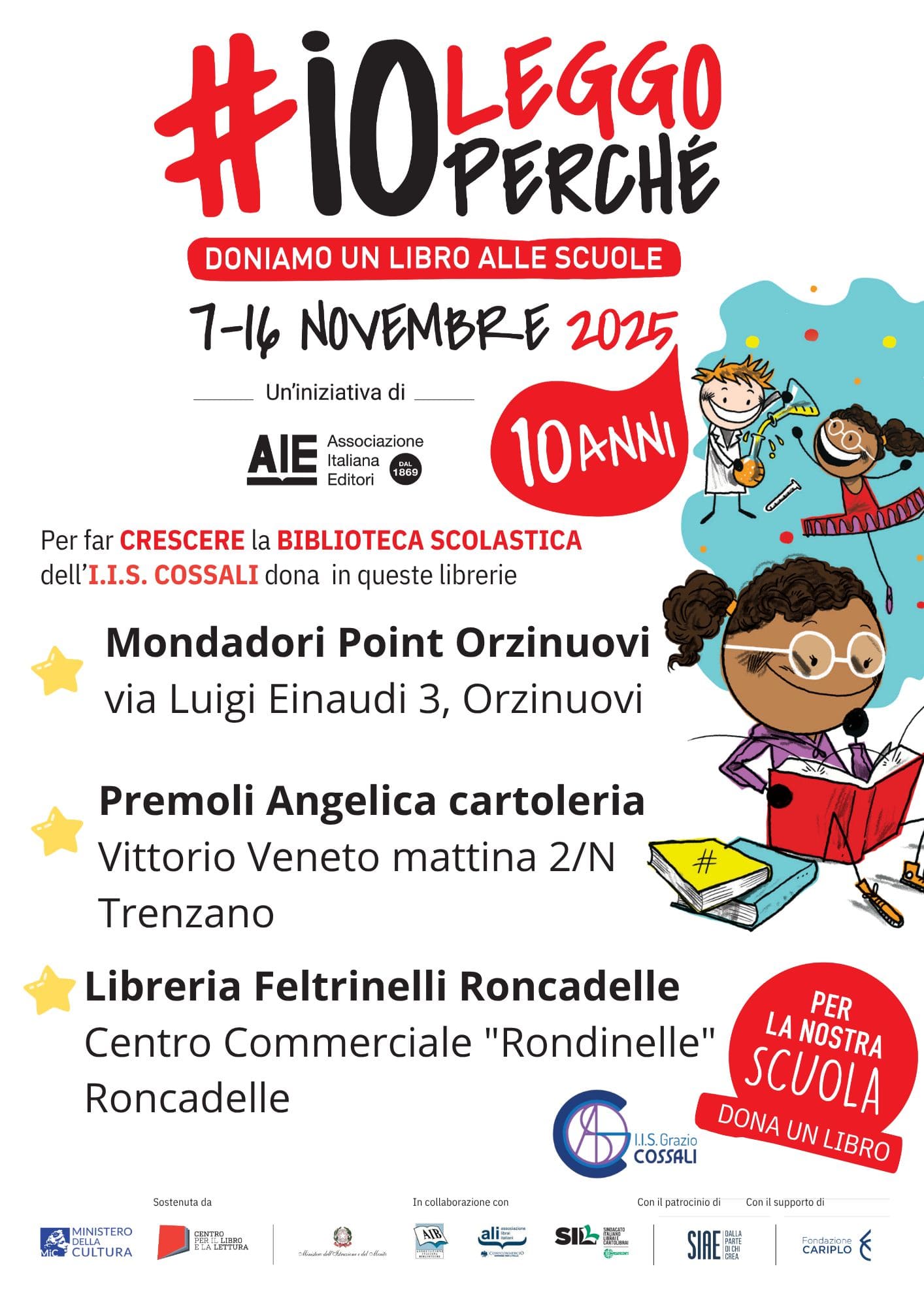 Tra il 7 e il 16 novembre 2025 chiunque lo desideri potrà recarsi nelle librerie gemellate con l’Istituto, scegliere un libro, acquistarlo e donarlo alla scuola.